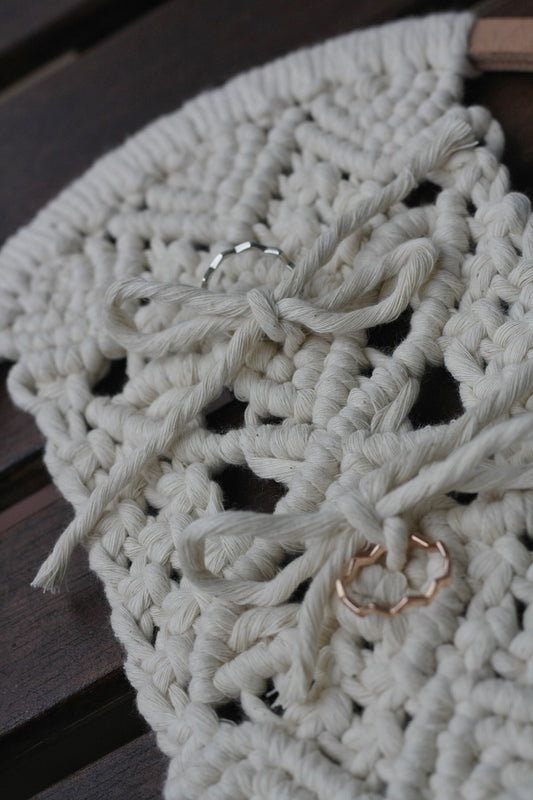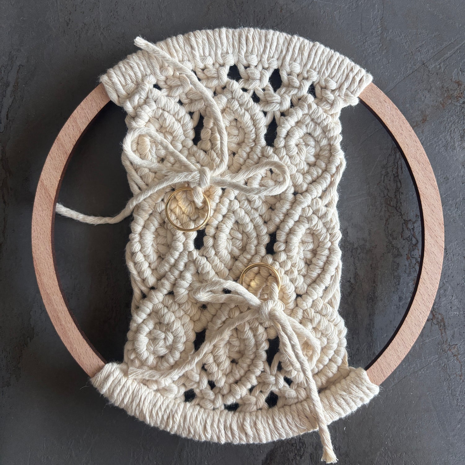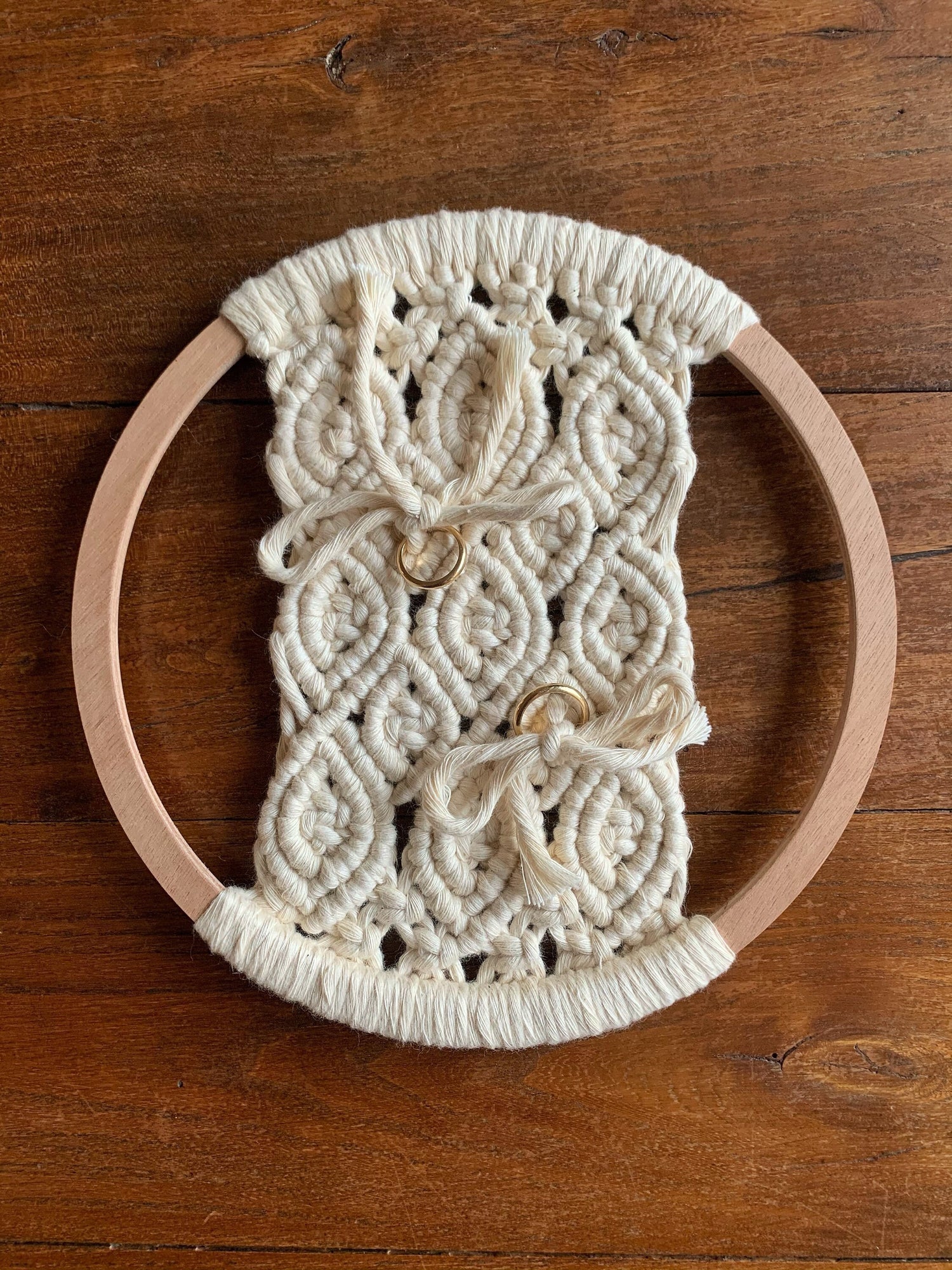 Porta fedi matrimonio in macramè trama ampia | boho wedding