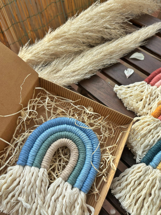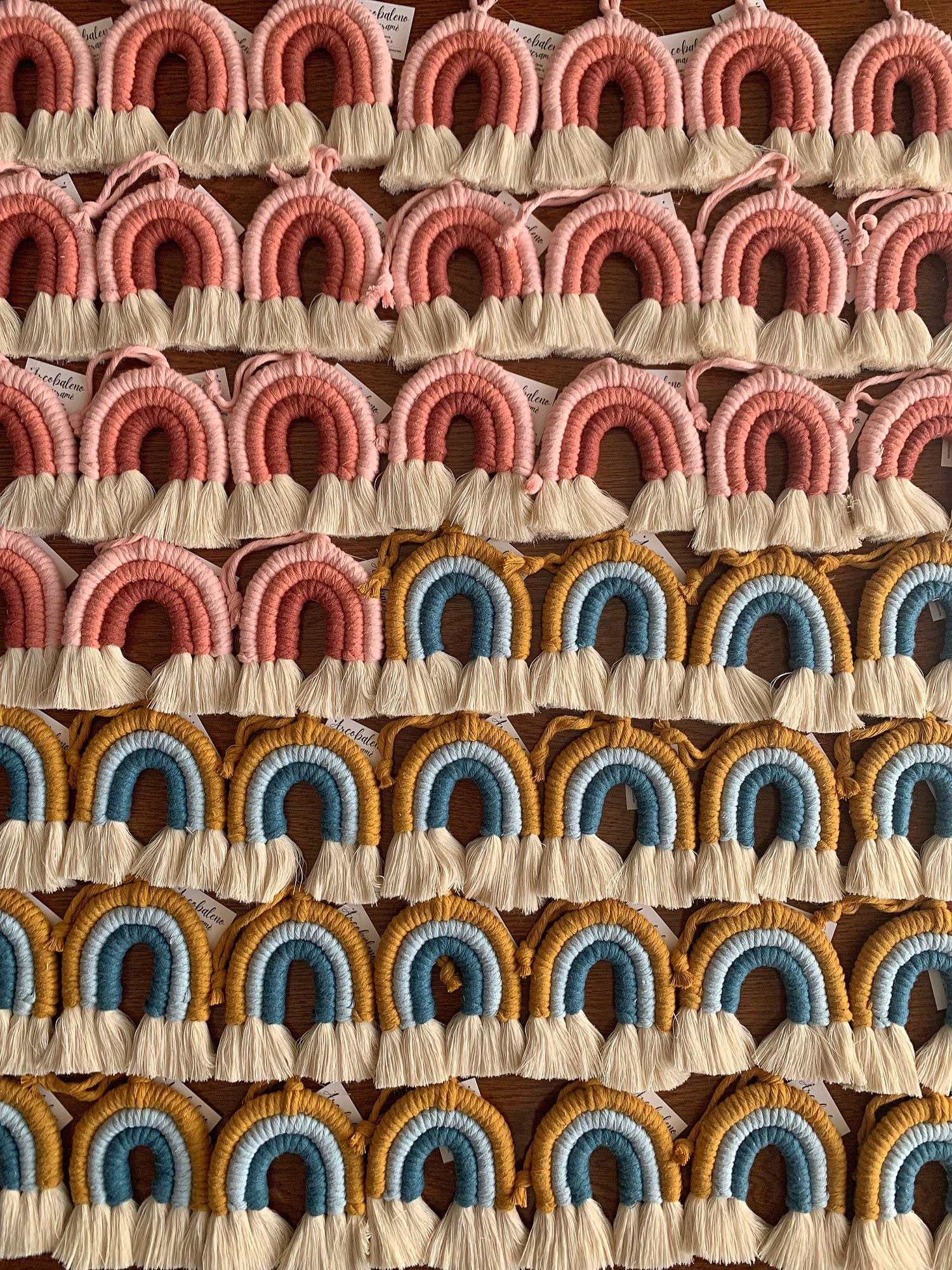 Mini arcobaleno con portachiavi ad anello | Bomboniera in macramè
